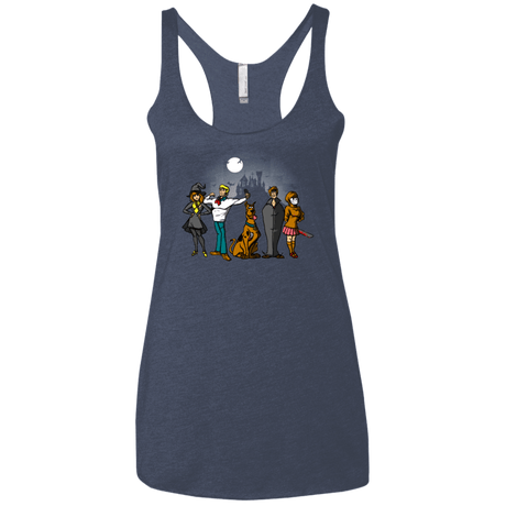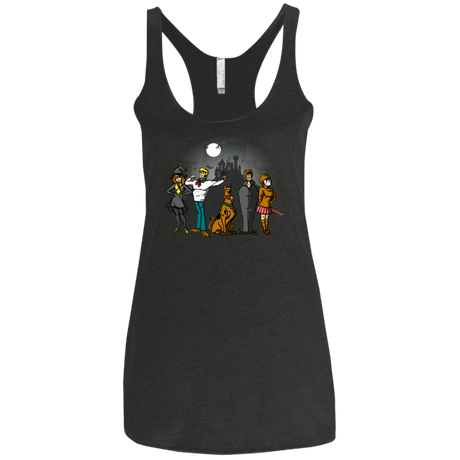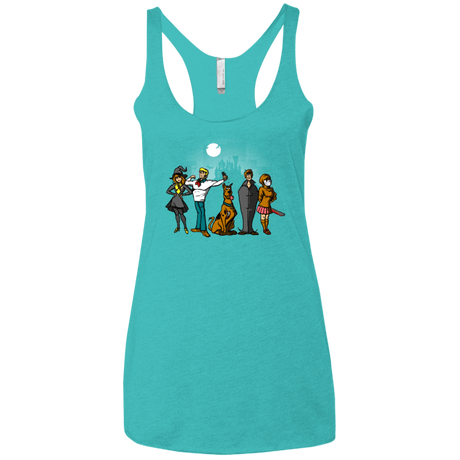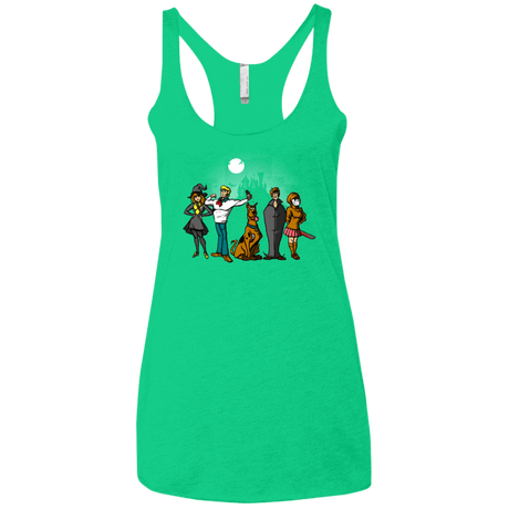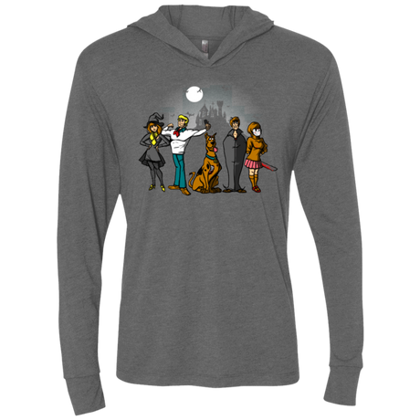 In this cartoonish design, the main characters of the Scooby Doo cartoon can be seen wearing Halloween costumes looking mysterious.